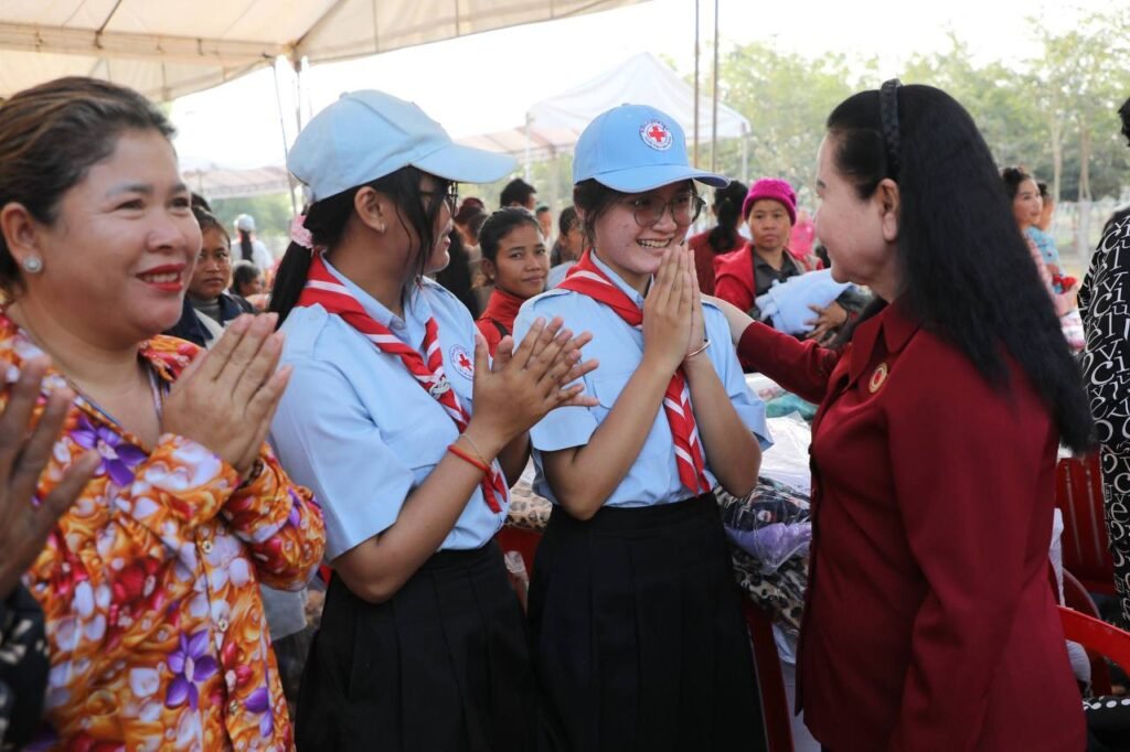 នាកិច្ចសំណេះសំណាលសួរសុខទុក្ខជាមួយប្រជាជនភៀសសឹកទាំងអស់ អ្នកម្ដាយមនុស្សធម៌ សម្តេចកិត្តិព្រឹទ្ធបណ្ឌិត ប៊ុន រ៉ានី ហ៊ុនសែន បានពាំនាំនូវព្រះរាជបន្ទូលរបស់ ព្រះករុណា ព្រះមហាក្សត្រ ជាអម្ចាស់ជីវិតលើត្បូង និងព្រះសវណីយ៍ សម្តេចព្រះមហាក្សត្រី ព្រះវររាជមាតាជាតិខ្មែរ ព្រះប្រធានកិត្តិយស កាកបាទក្រហមកម្ពុជា ជាទីគោរពសក្ការៈដ៏ខ្ពង់ខ្ពស់បំផុត ដែលព្រះអង្គទាំងទ្វេបានផ្តាំផ្ញើសួរសុខទុក្ខ និងក្តីនឹករលឹក ជាពិសេសការគិតគូរពីសុខទុក្ខប្រជានុរាស្ត្ររបស់ព្រះអង្គនៅគ្រប់ទីកន្លែង និងគ្រប់ពេលវេលា ព្រមទាំងសូមជូនពរបងប្អូនប្រជាពលរដ្ឋសូមមានសុខភាពល្អ ដើម្បីបន្តប្រកបរបរចិញ្ចឹមជីវិតតទៅមុខទៀត។